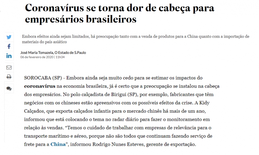O jornal O Estado de S.Paulo, com mais de 1.800.000 leitores, publicou matéria com a Abimei sobre os impactos do coronavírus na indústria brasileira. Clique aqui e confira a matéria na íntegra.